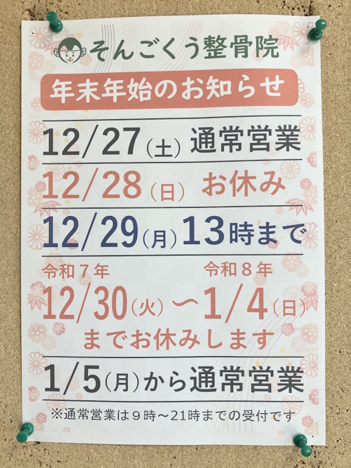 12/30(火)より令和8年1/4(日)までを年末年始休み