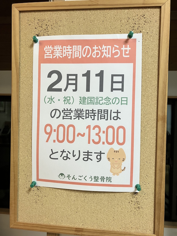 令和8年2月11日(水・建国記念の日)は午後1時までの開院です。